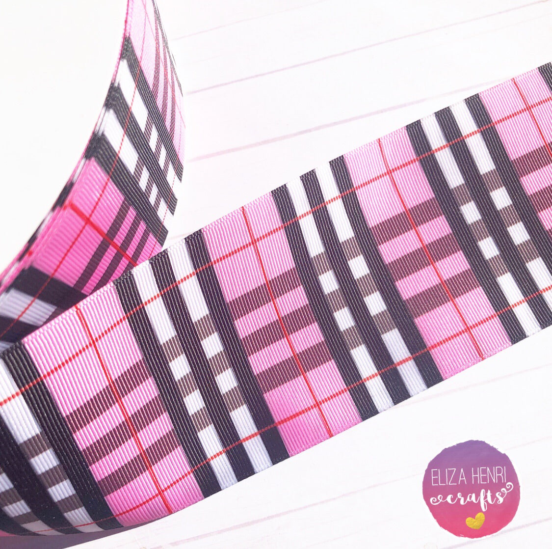 Pink Plaid Grosgrain Ribbon 2'' or 3''
