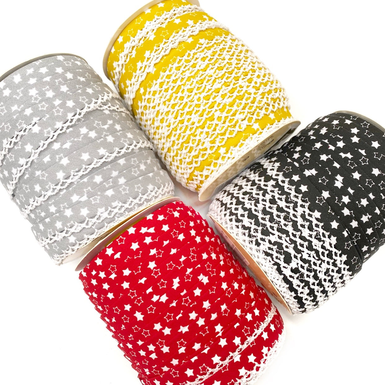 Pre Folded 12mm Star Laced Edge Bias Binding Trim