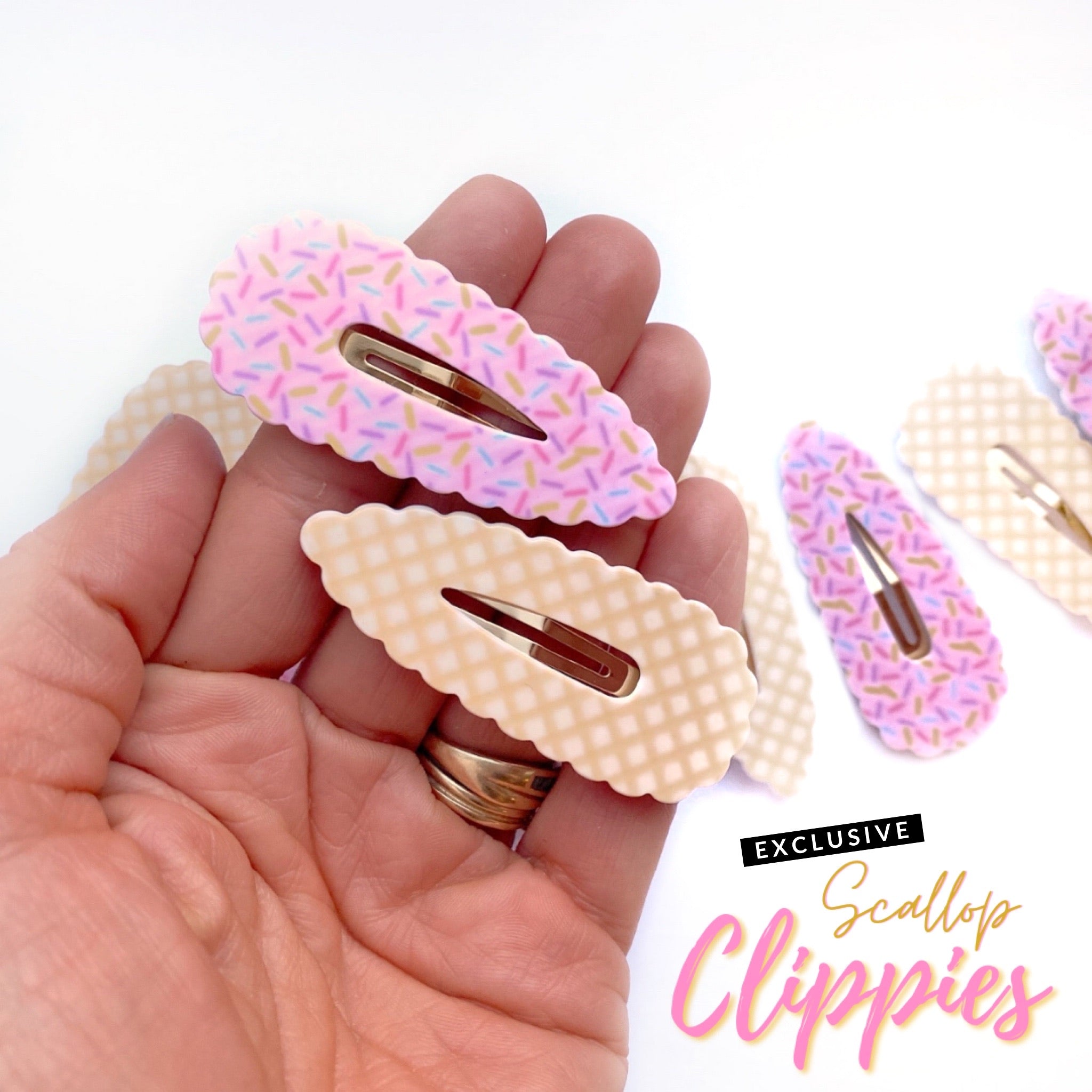 Set of 5 Printed Acrylic Scallop Snap Clips.