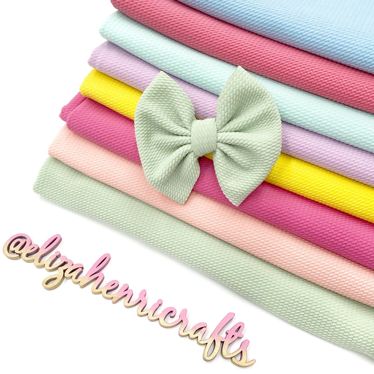 This stretchy material is of a high quality and is superior to other fabrics, as the raw edges do not unravel or fray. This uniqueness allows you the option to create a range of no sew products that produce clear, clean cut edges such as- Bows, Head Wraps, ‘Bummies’, Bloomers, Clothing, baby swaddels etc. There are so many possibilities.