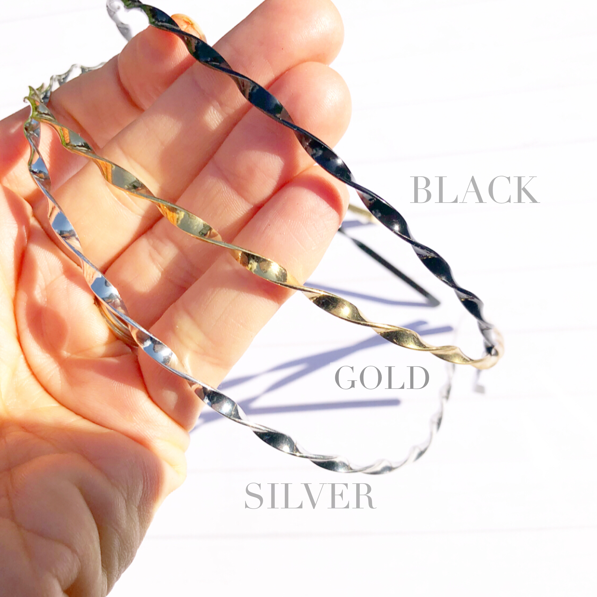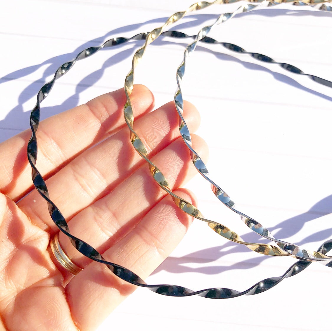 A beautiful twisted metallic headband suitable for most Crafts, can add your own ribbon or use as they are.