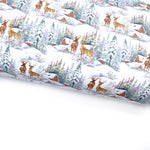 Winter Deers Snow Scene Lux Premium Canvas Bow Fabrics