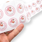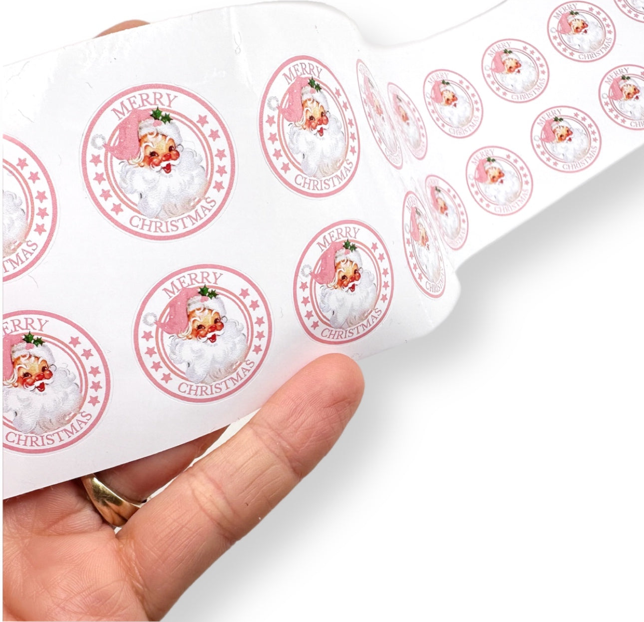 Merry Christmas Pink Santa 1” stickers- Premium White Gloss