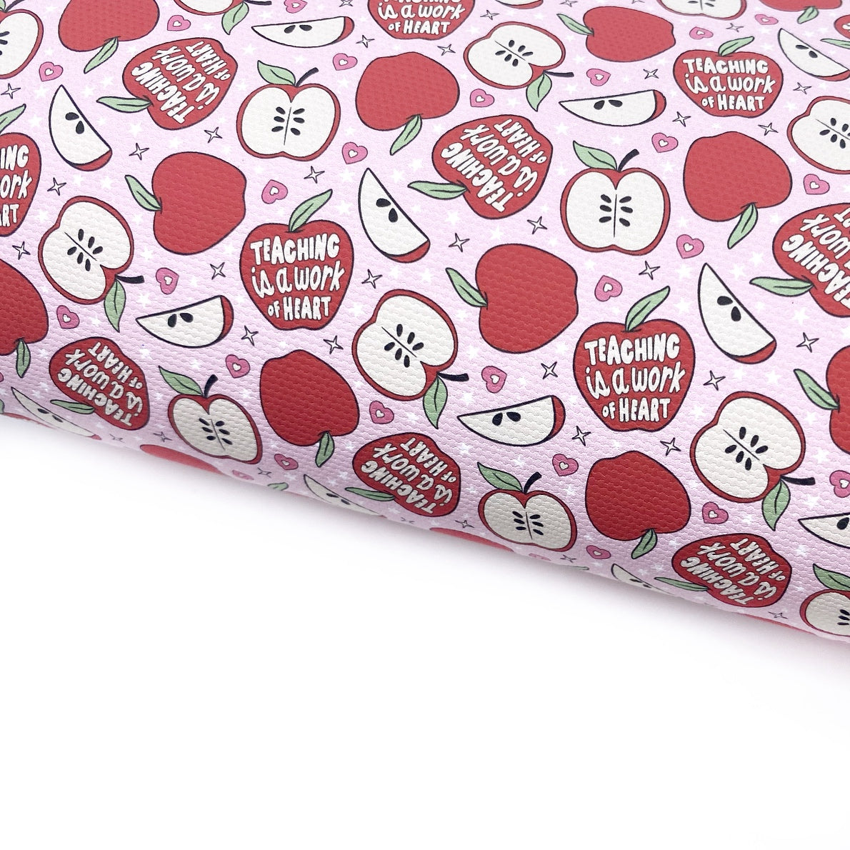 Teaching is a work of Heart Apples Lux Premium Printed Bow Fabric