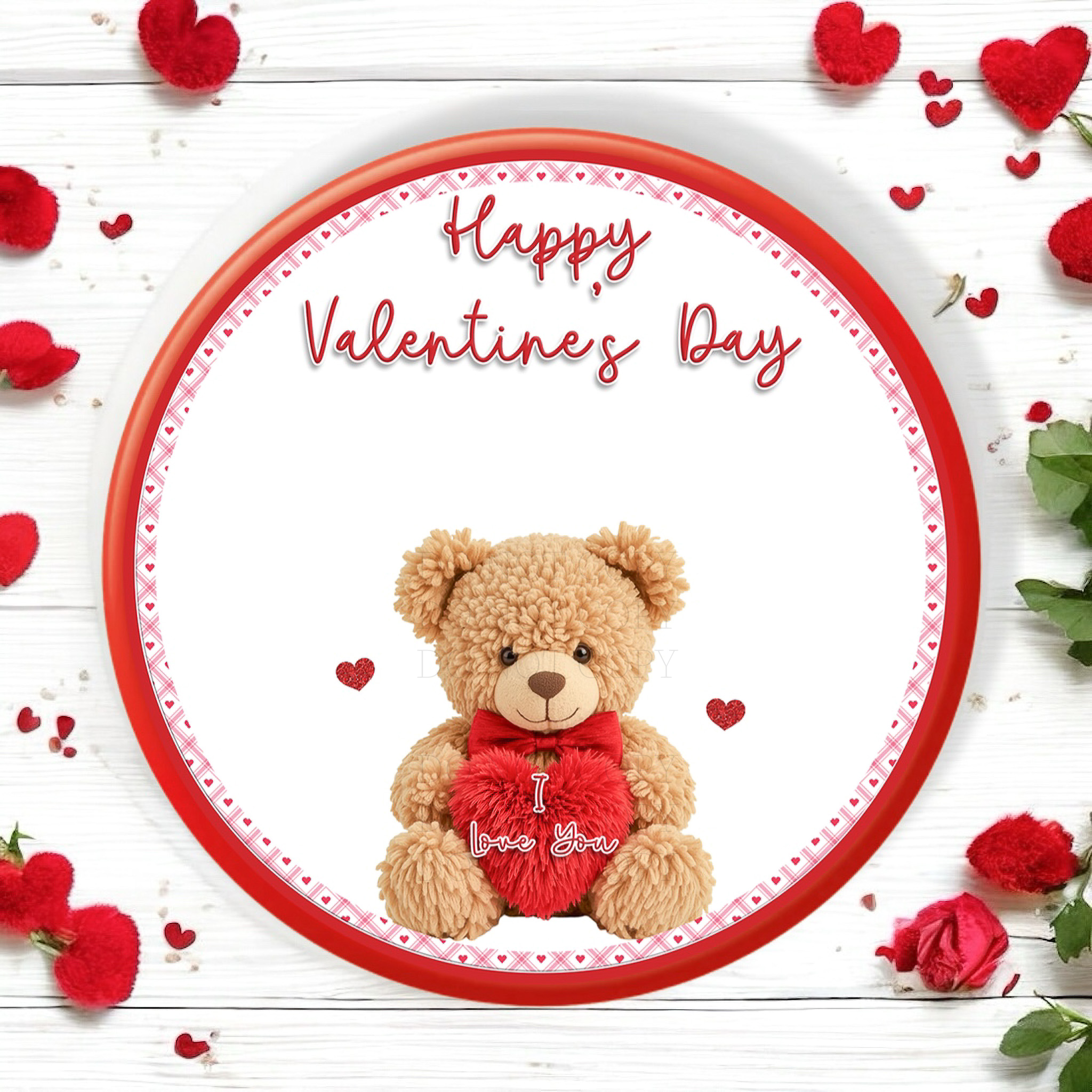 UV PRINTED - VALENTINES - FLUFFY RED TEDDY CHOCOLATE TUB DECALS