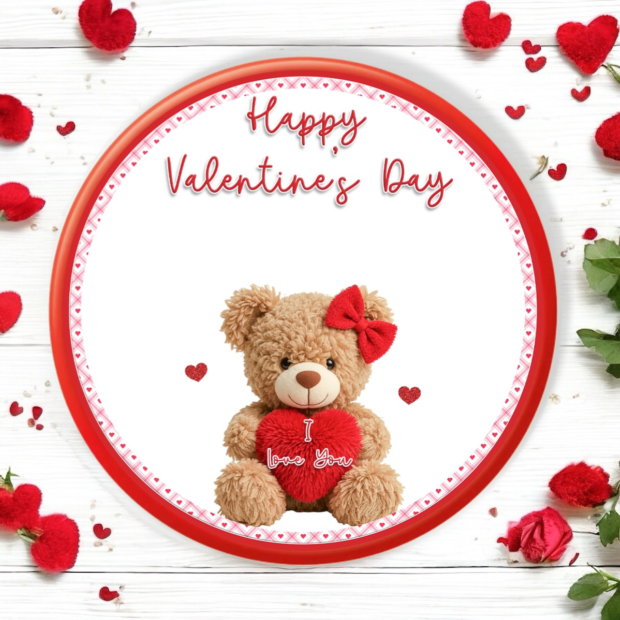 UV PRINTED - VALENTINES - FLUFFY RED TEDDY WITH BOW CHOCOLATE TUB DECALS
