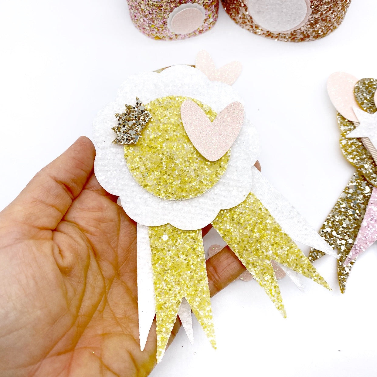 Two scallop circular centres for a crown badge or a bow centre badge just like our shaker felties with 2 inner circles to double layer. These inner circles also double up as ribbon covers for the back of your bow holders to cover up ribbon attachment points.