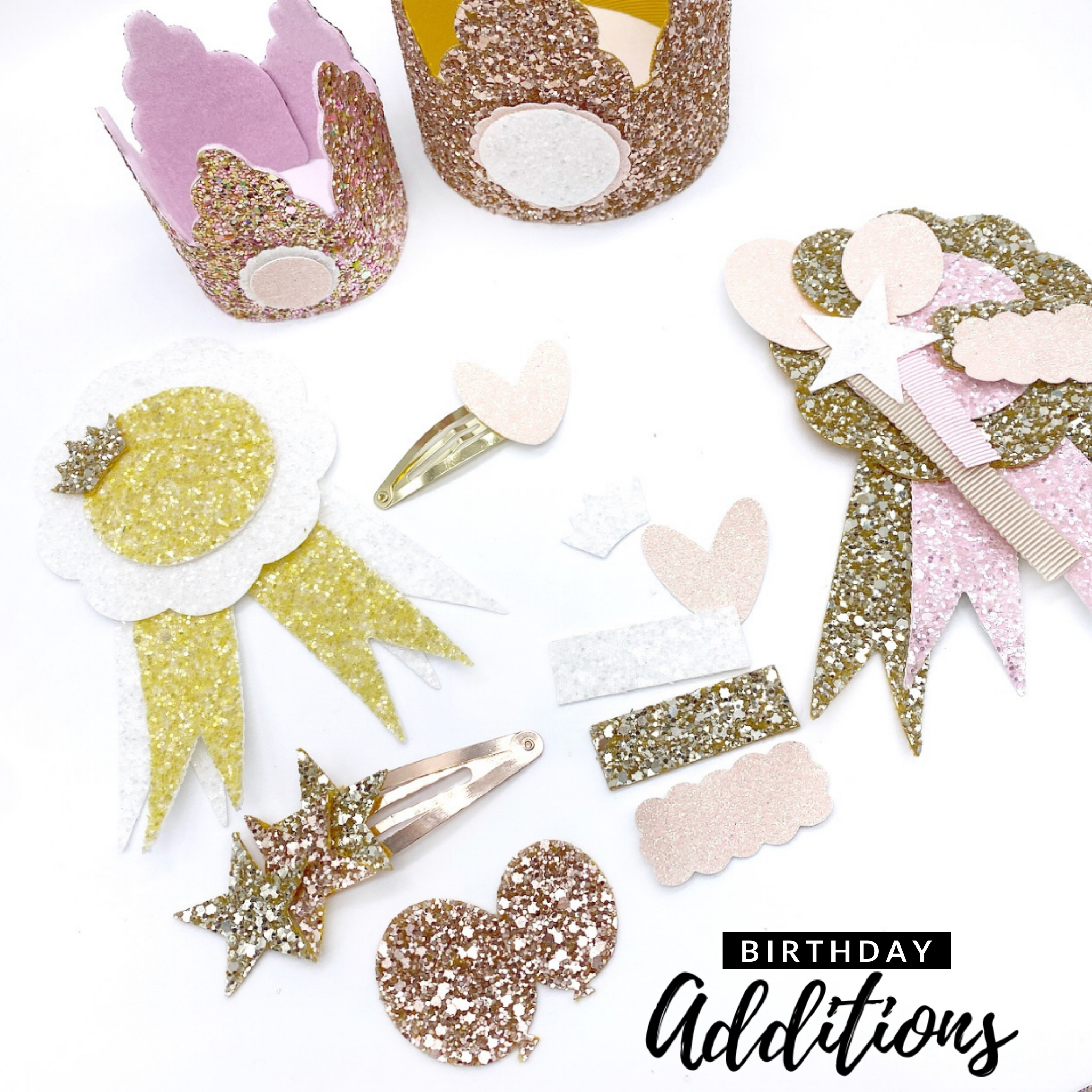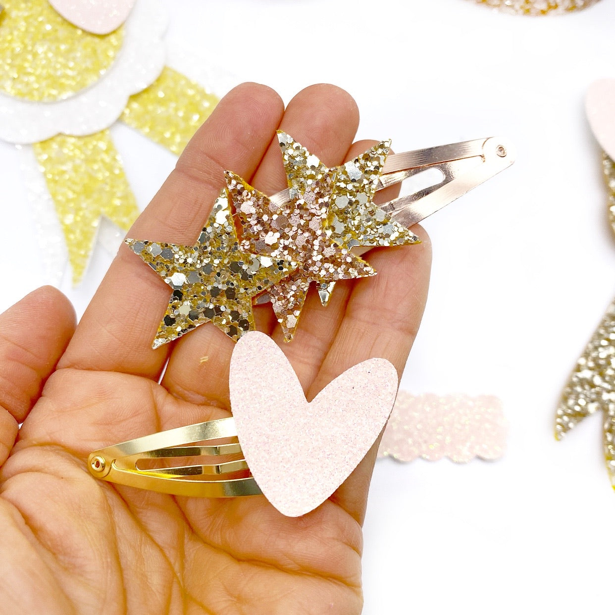 Also included are shapes to decorate products or even add to snap clips, such as 2 balloons large and small, a heart, a crown and a star.
