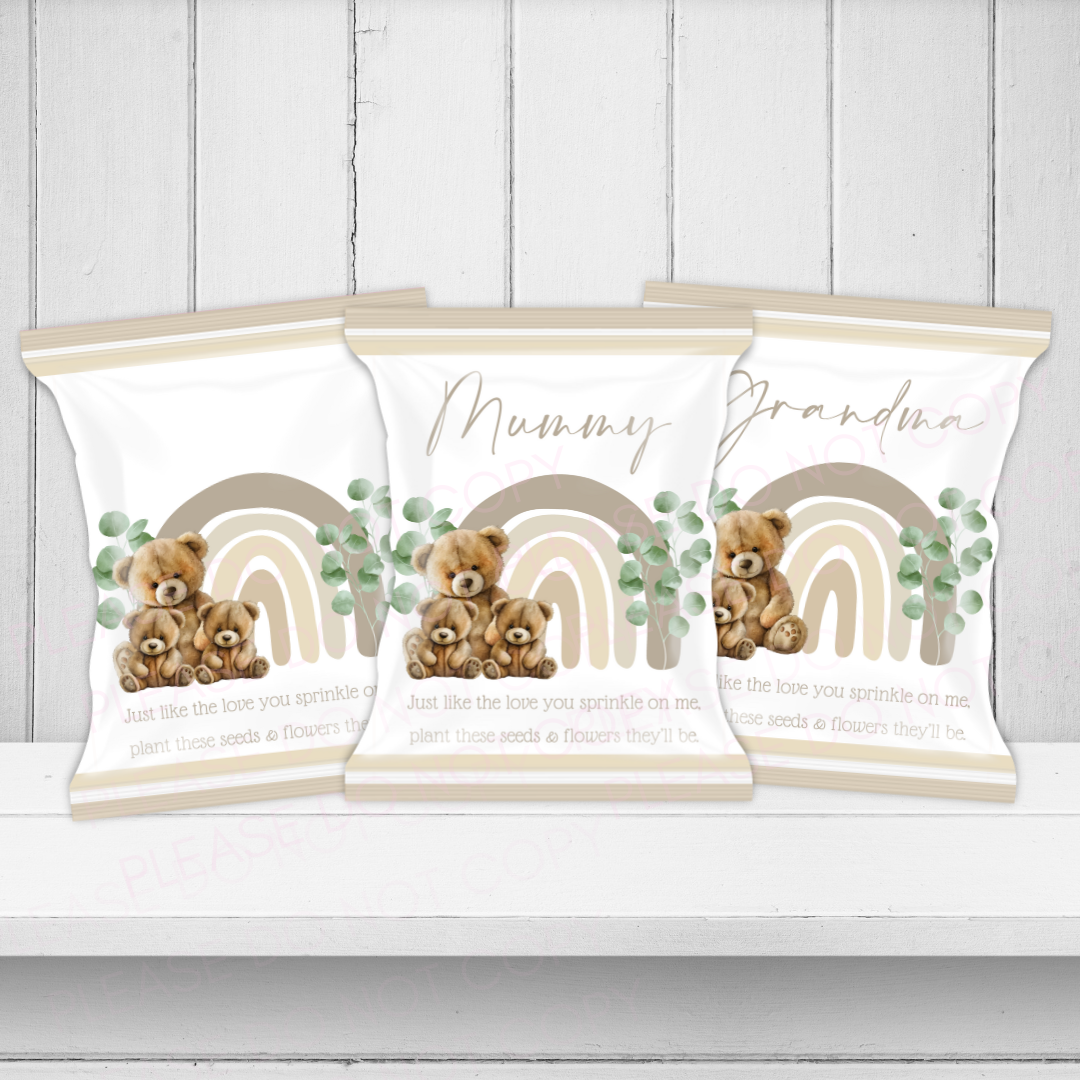 Neutral Rainbow Bear DIY Seed Packet