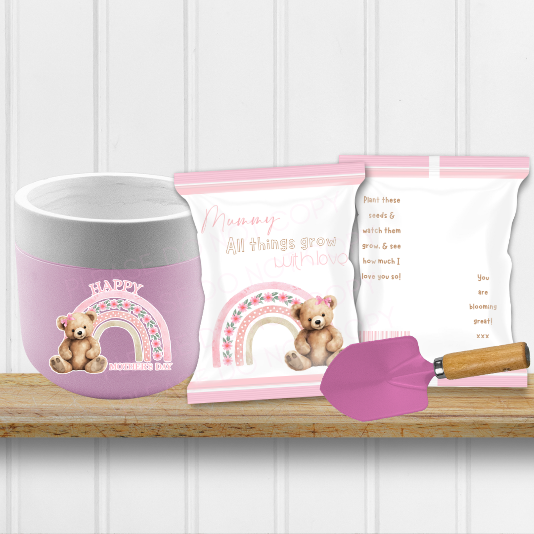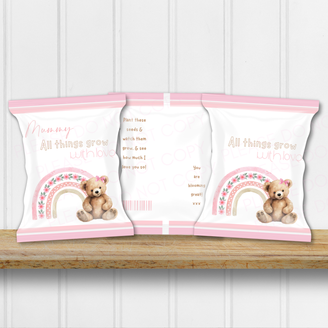 Pink Teddy Bear Rainbow DIY Seed Packet