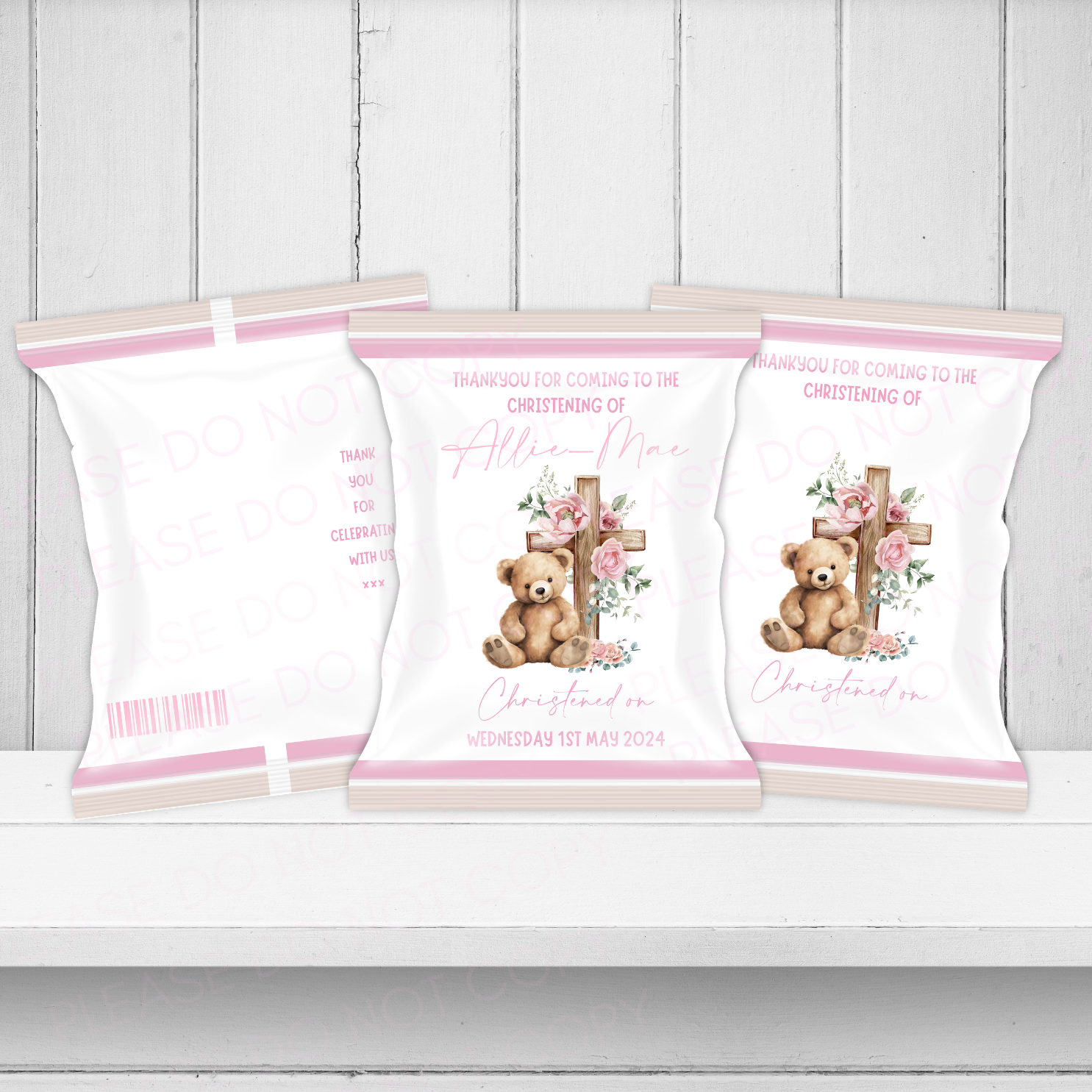 Pink Themed Teddy Bear with Floral Cross Christening DIY Treat Packs