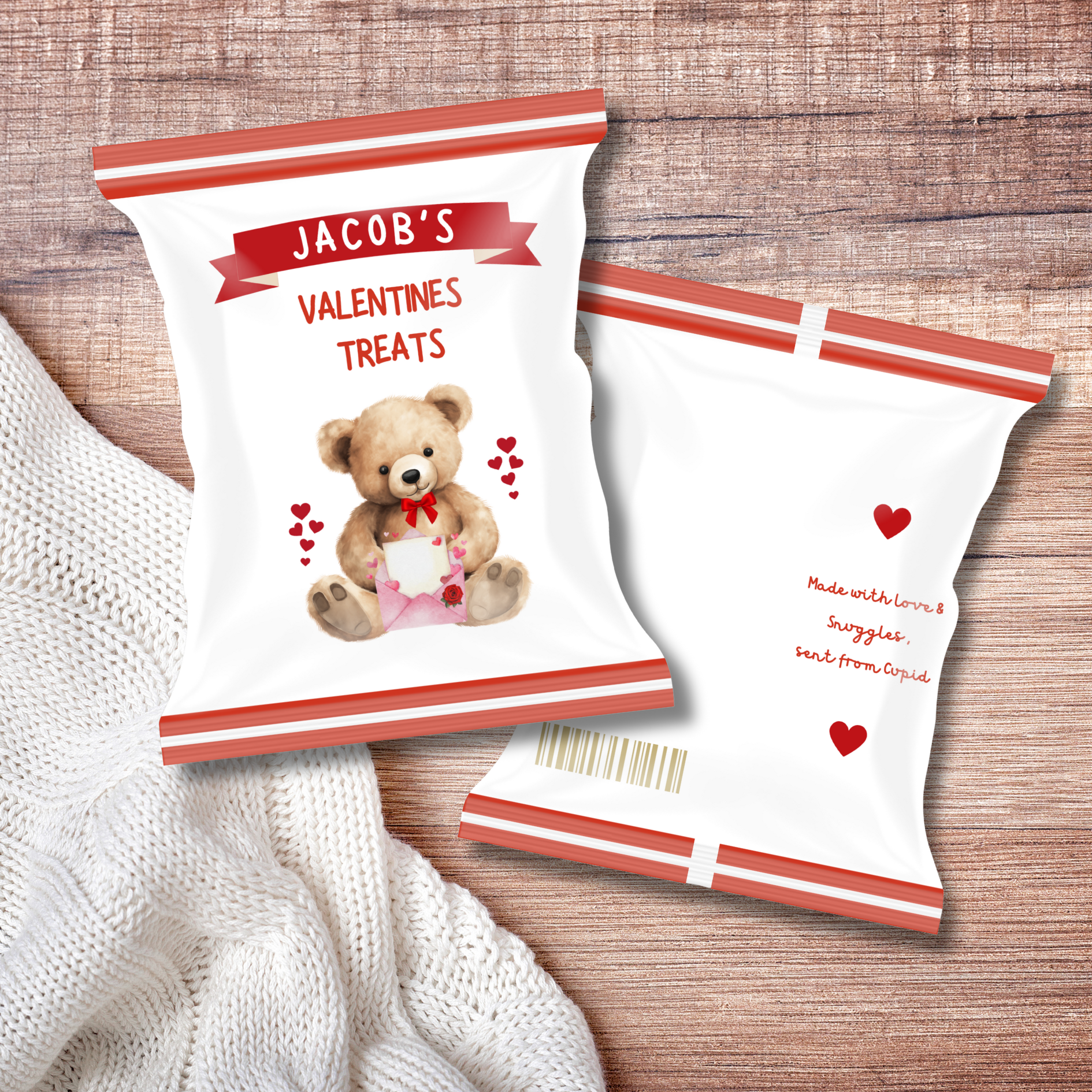 RED VALENTINES DAY TEDDY BEAR DIY TREAT PACKETS