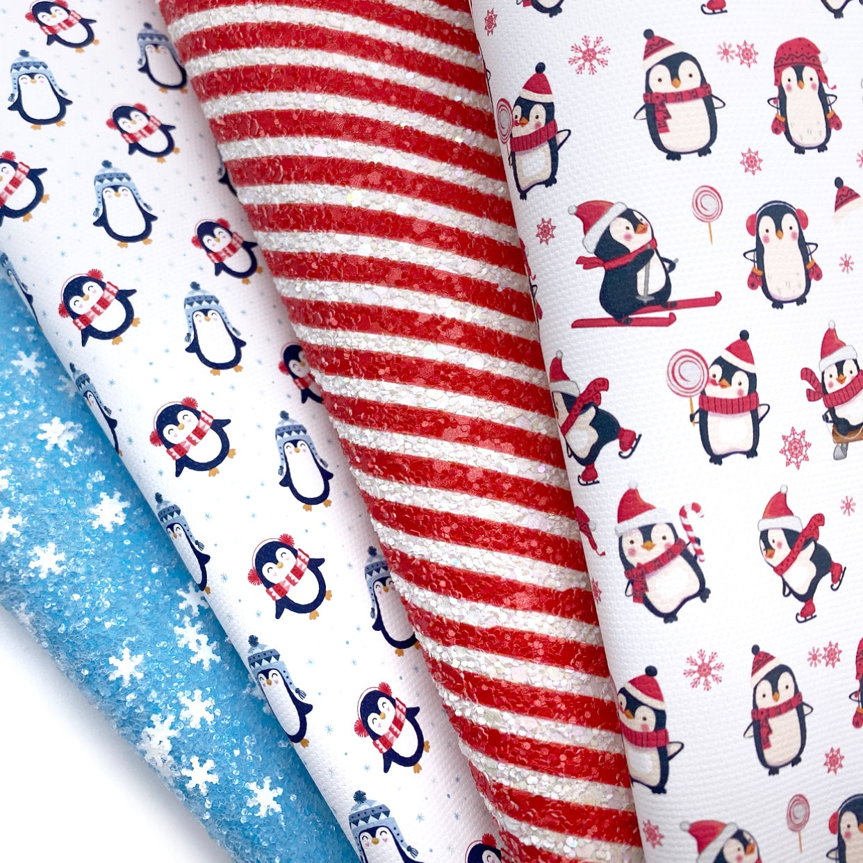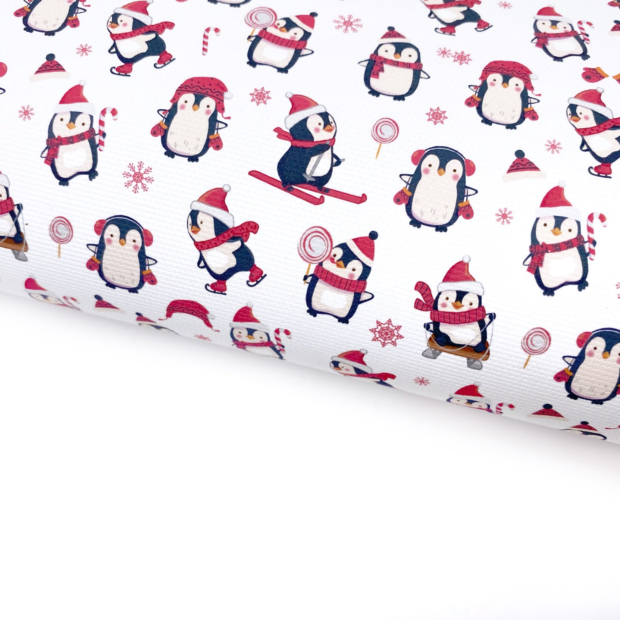 Christmas Penguins Lux Premium Canvas Bow Fabrics