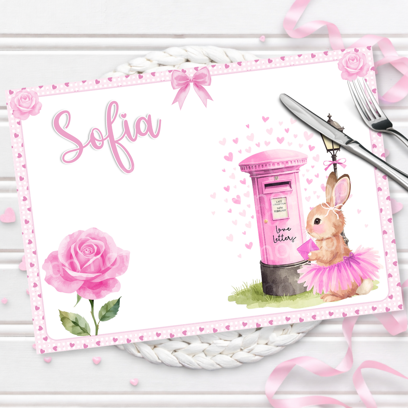 VALENTINES- PINK BUNNY- PREMIUM LEATHERETTE PLACEMAT
